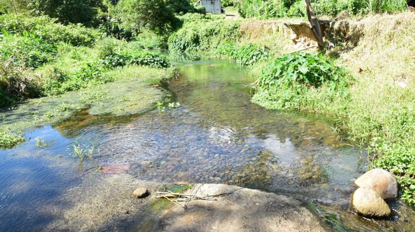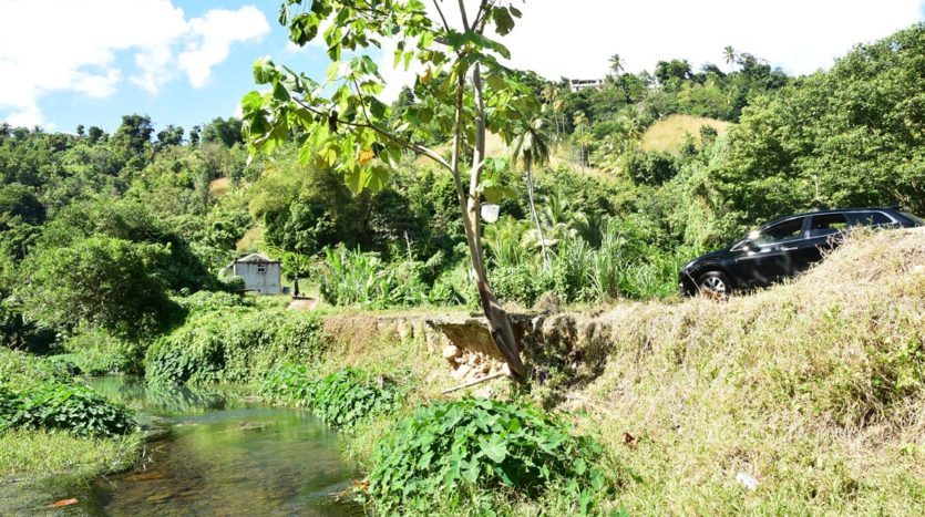 The vacant plot of land is mainly covered with bush and abandoned crops. It is off the grid but electricity is a short distance away at Paix Bouche. There is a small river across the road from the property. The plot is zoned agricultural but has potential to be developed as mixed housing/agricultural.