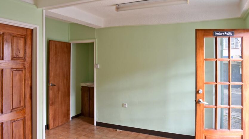 Newly refurbished ground floor of a three (3) story reinforced concrete commercial building at 7 Cross Street, Roseau. Available for immediate rental.