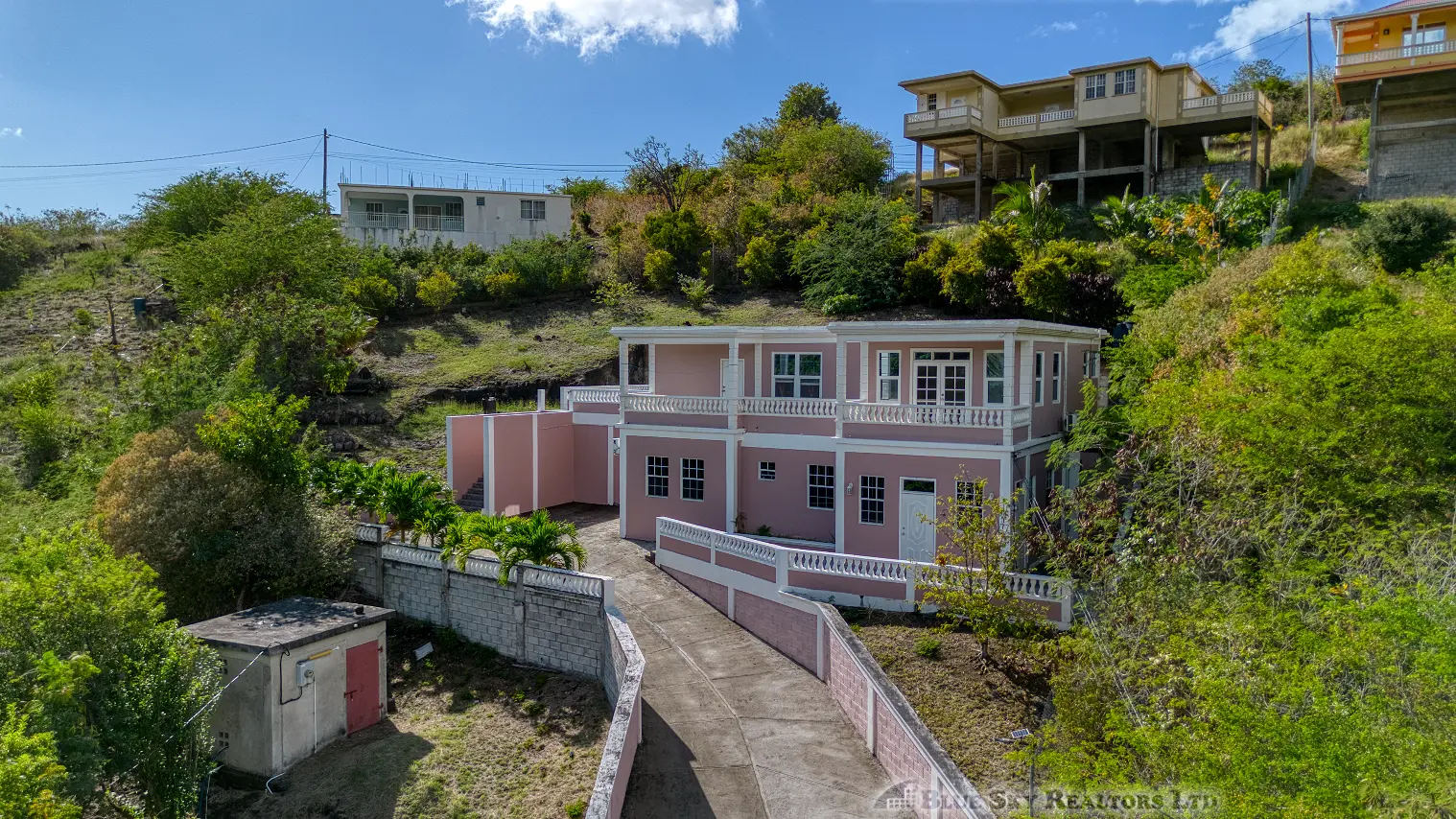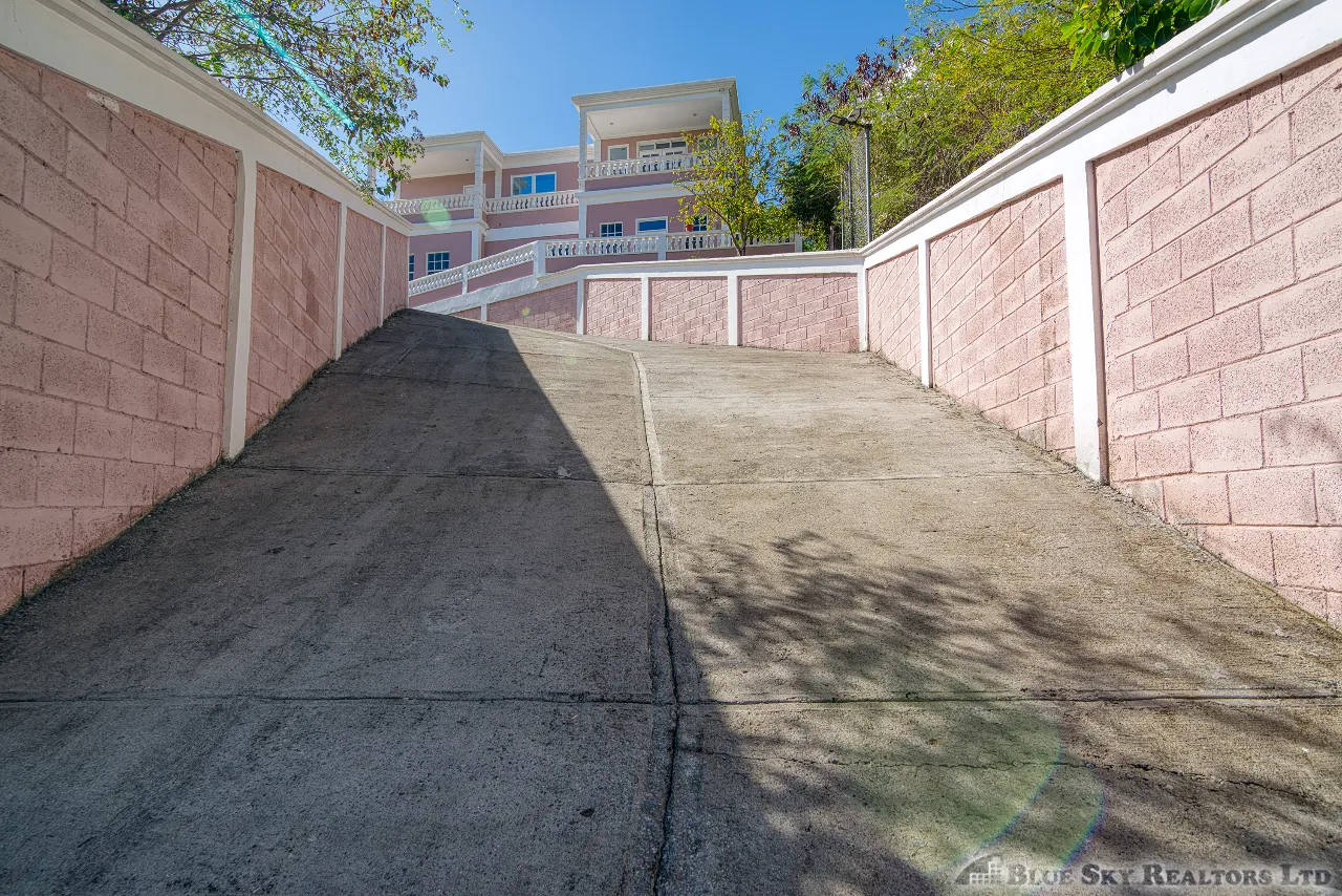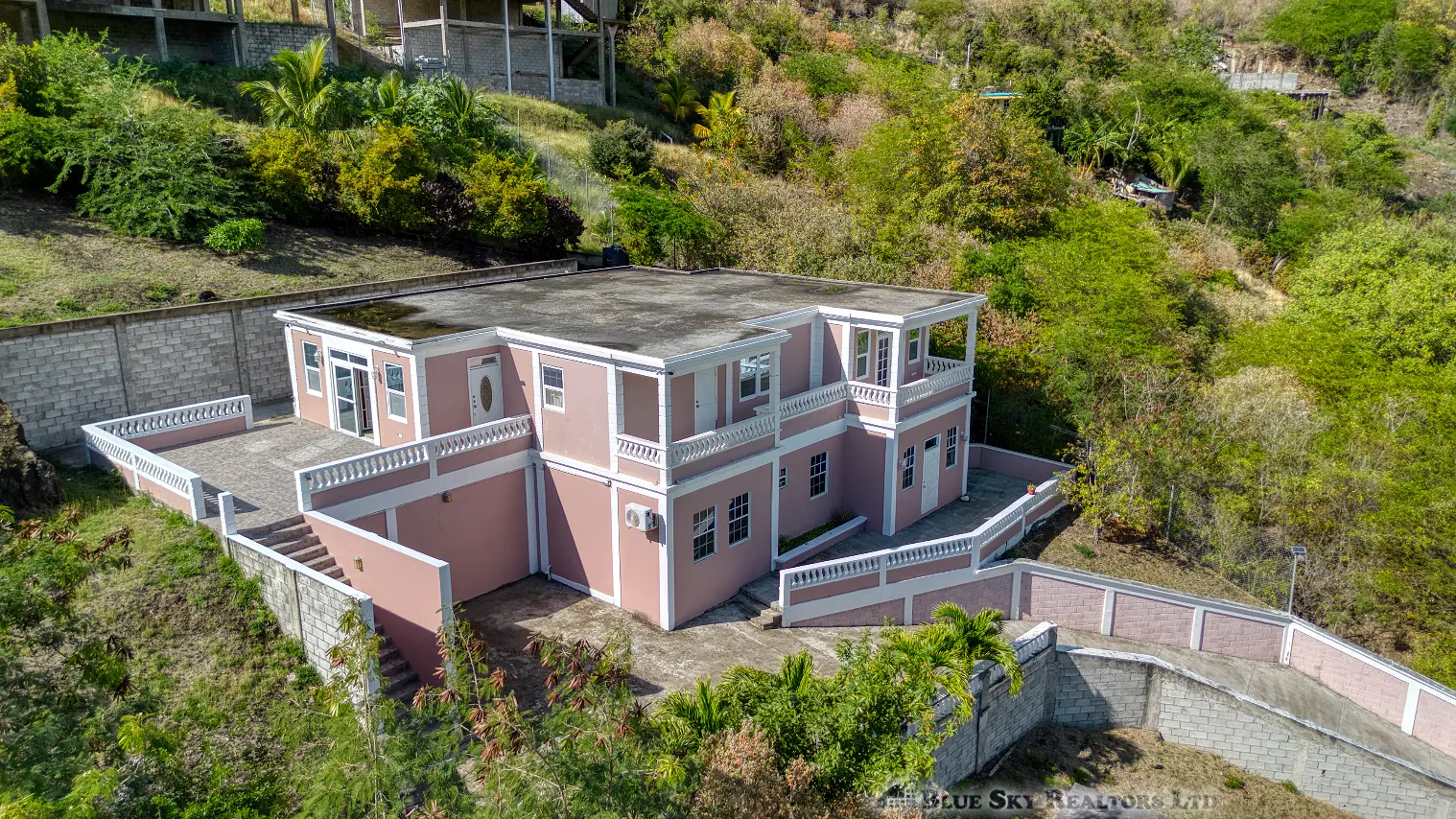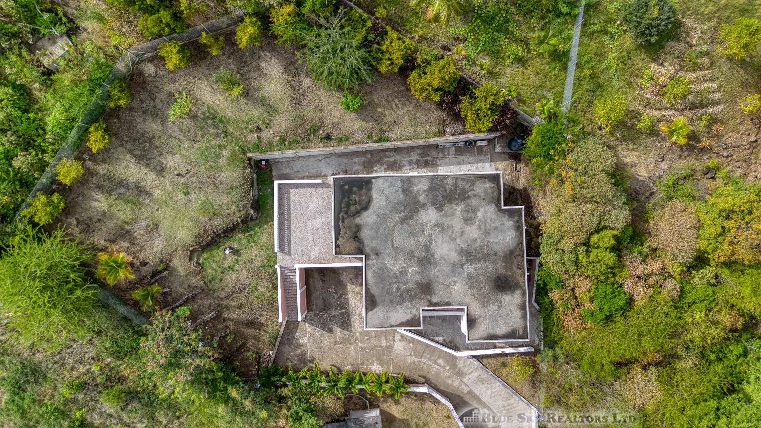 Situated in a prime hillside location at Cuba Road, this five-bedroom concrete building represents a fantastic opportunity for a discerning buyer. The house is nestled within a 13,177 square foot lot of gently sloping land that is fully enclosed with wire fencing, providing a safe and private environment. Directly facing the well-known Campeche Villa, the home offers spectacular and unobstructed views of the lush green mountains and the sparkling Caribbean Sea to the southwest. The structural integrity is reinforced by a concrete roof, which not only provides durability but also offers a clear path for future upward expansion.