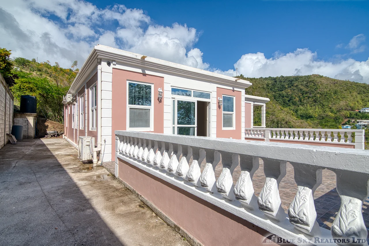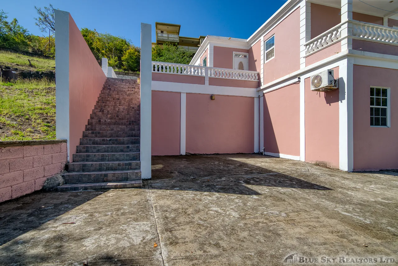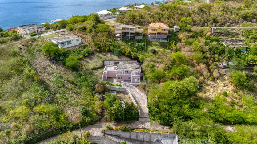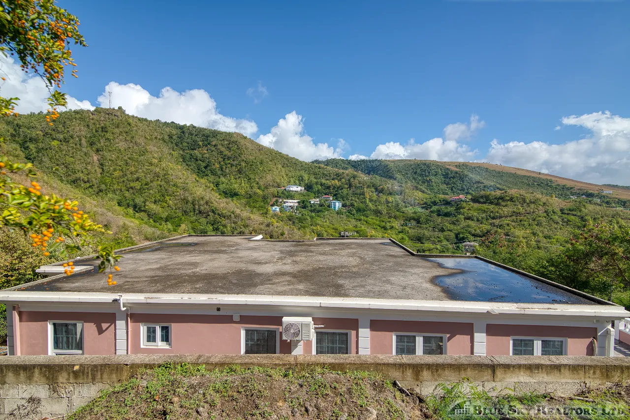 Situated in a prime hillside location at Cuba Road, this five-bedroom concrete building represents a fantastic opportunity for a discerning buyer. The house is nestled within a 13,177 square foot lot of gently sloping land that is fully enclosed with wire fencing, providing a safe and private environment. Directly facing the well-known Campeche Villa, the home offers spectacular and unobstructed views of the lush green mountains and the sparkling Caribbean Sea to the southwest. The structural integrity is reinforced by a concrete roof, which not only provides durability but also offers a clear path for future upward expansion.