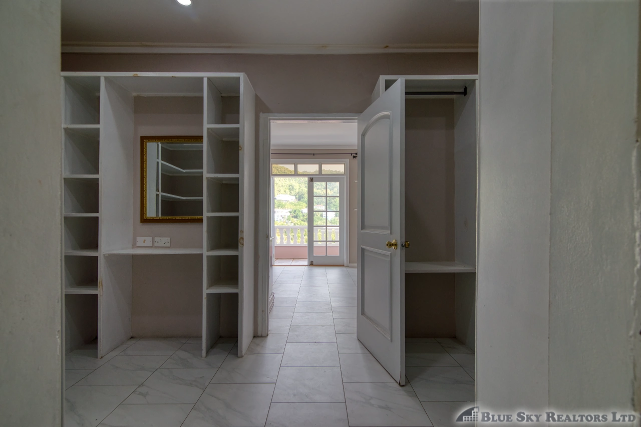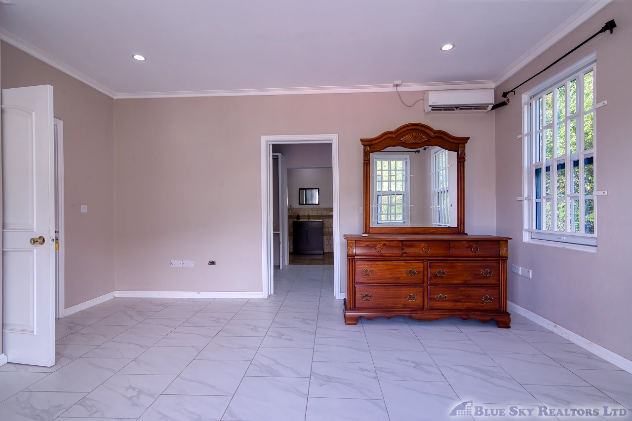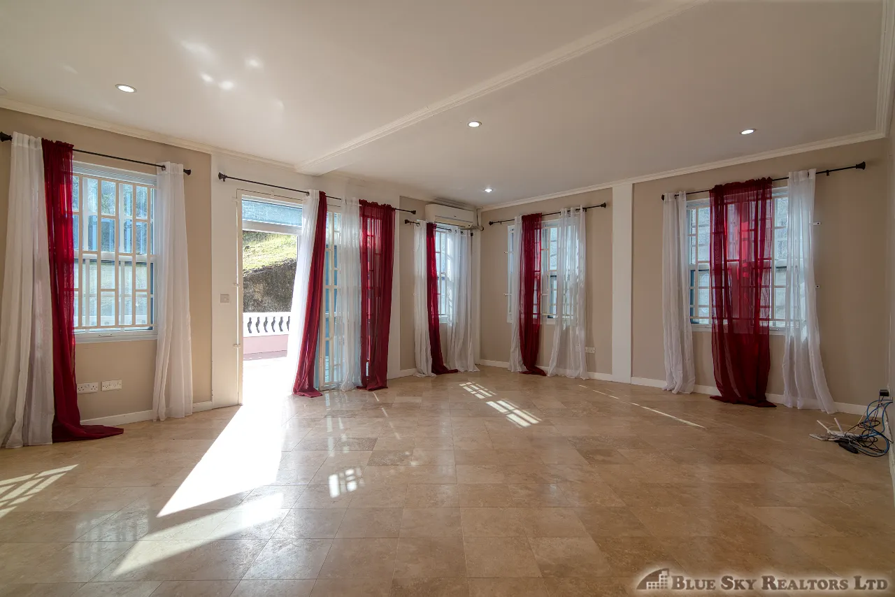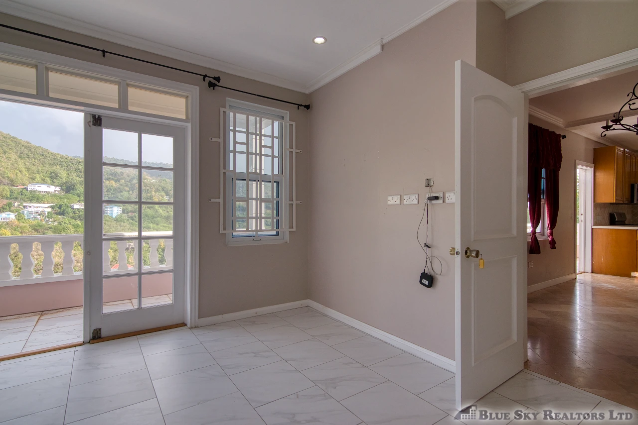 Situated in a prime hillside location at Cuba Road, this five-bedroom concrete building represents a fantastic opportunity for a discerning buyer. The house is nestled within a 13,177 square foot lot of gently sloping land that is fully enclosed with wire fencing, providing a safe and private environment. Directly facing the well-known Campeche Villa, the home offers spectacular and unobstructed views of the lush green mountains and the sparkling Caribbean Sea to the southwest. The structural integrity is reinforced by a concrete roof, which not only provides durability but also offers a clear path for future upward expansion.