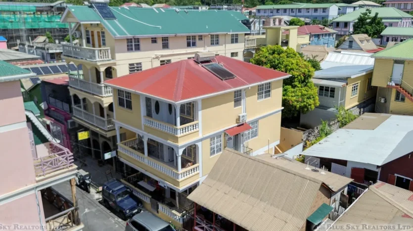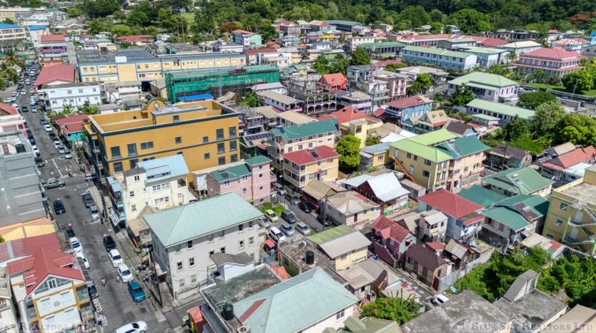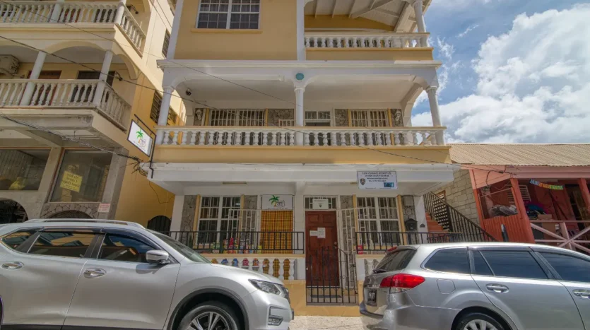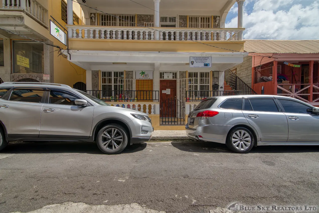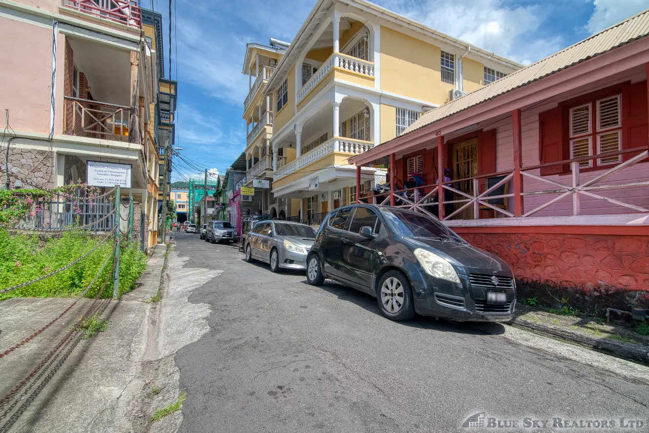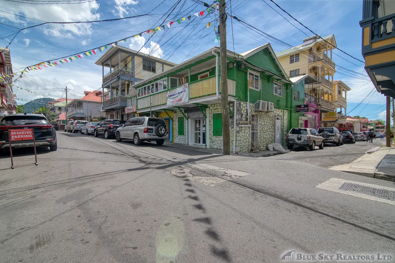 Discover an exceptional opportunity to own a luxurious three-story mixed-use property perfectly situated in the pulsating heart of Roseau, Dominica. Located on Fields Lane, just a stone’s throw (approximately 100 feet) from the main Independence Street, this distinguished building occupies 1,185 square feet of land with an excellent 28 feet of road frontage.