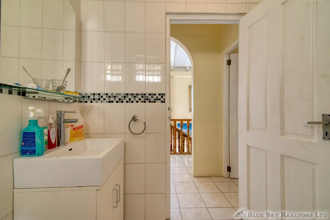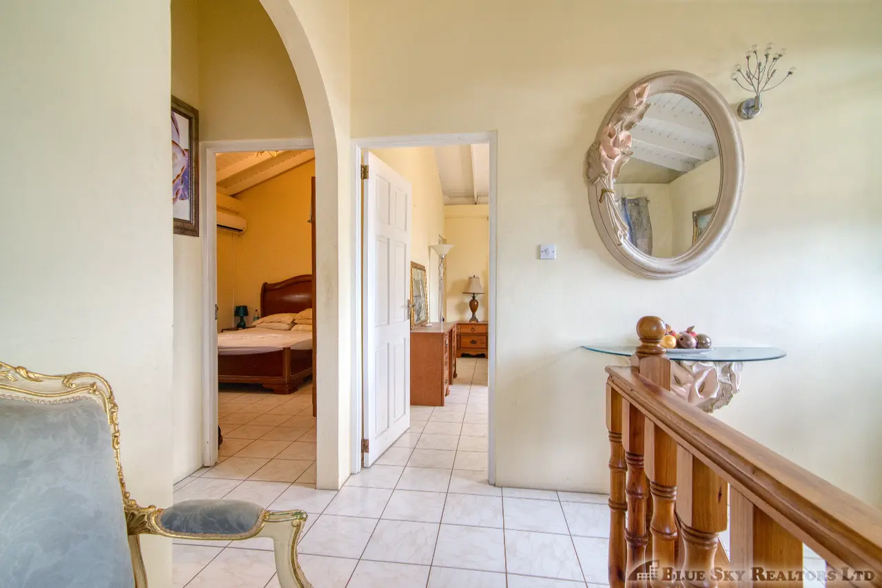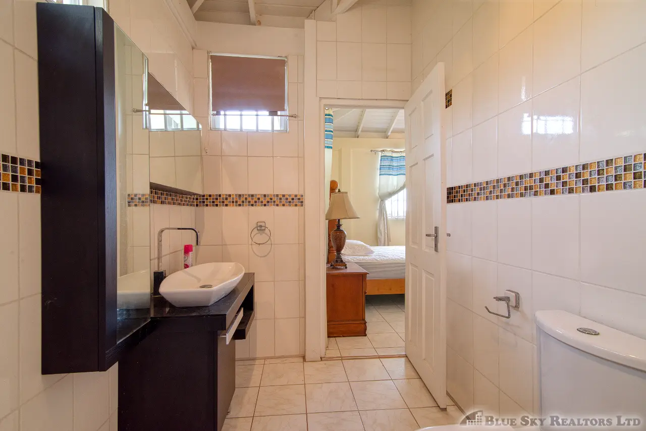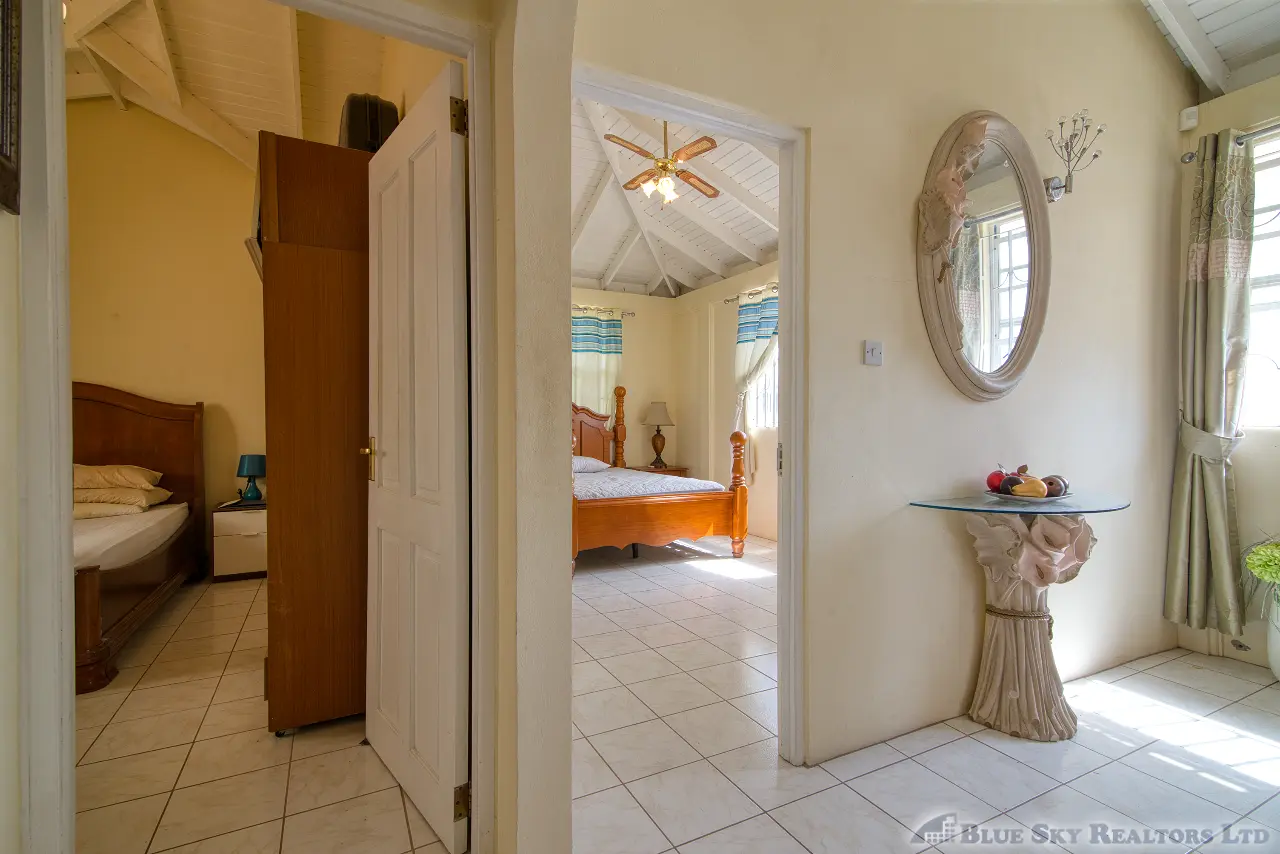 A beautifully finished wooden staircase leads you to the private sanctuary of the third floor. This level comprises three adorably finished bedrooms. The spacious master bedroom boasts a private en-suite bathroom. A shared bathroom services the two other well-sized bedrooms, one of which enjoys its own front porch, offering delightful views overlooking Fields Lane and Roseau to the west.