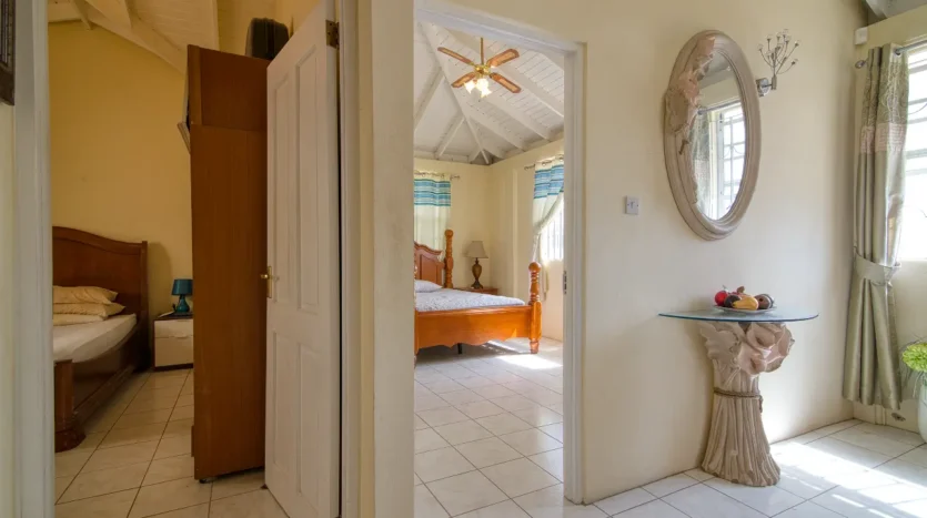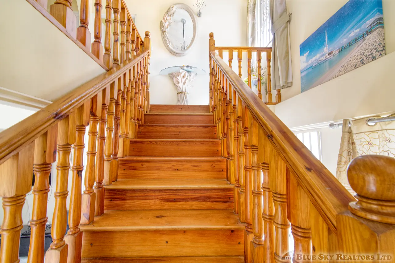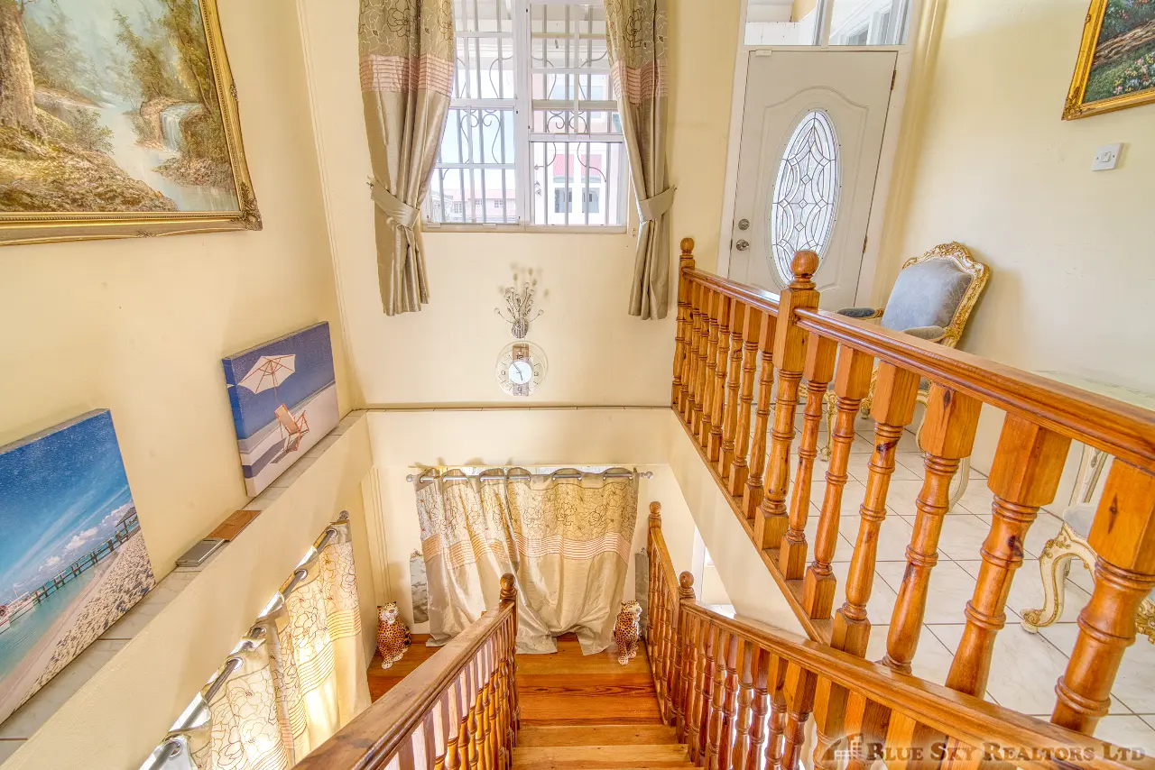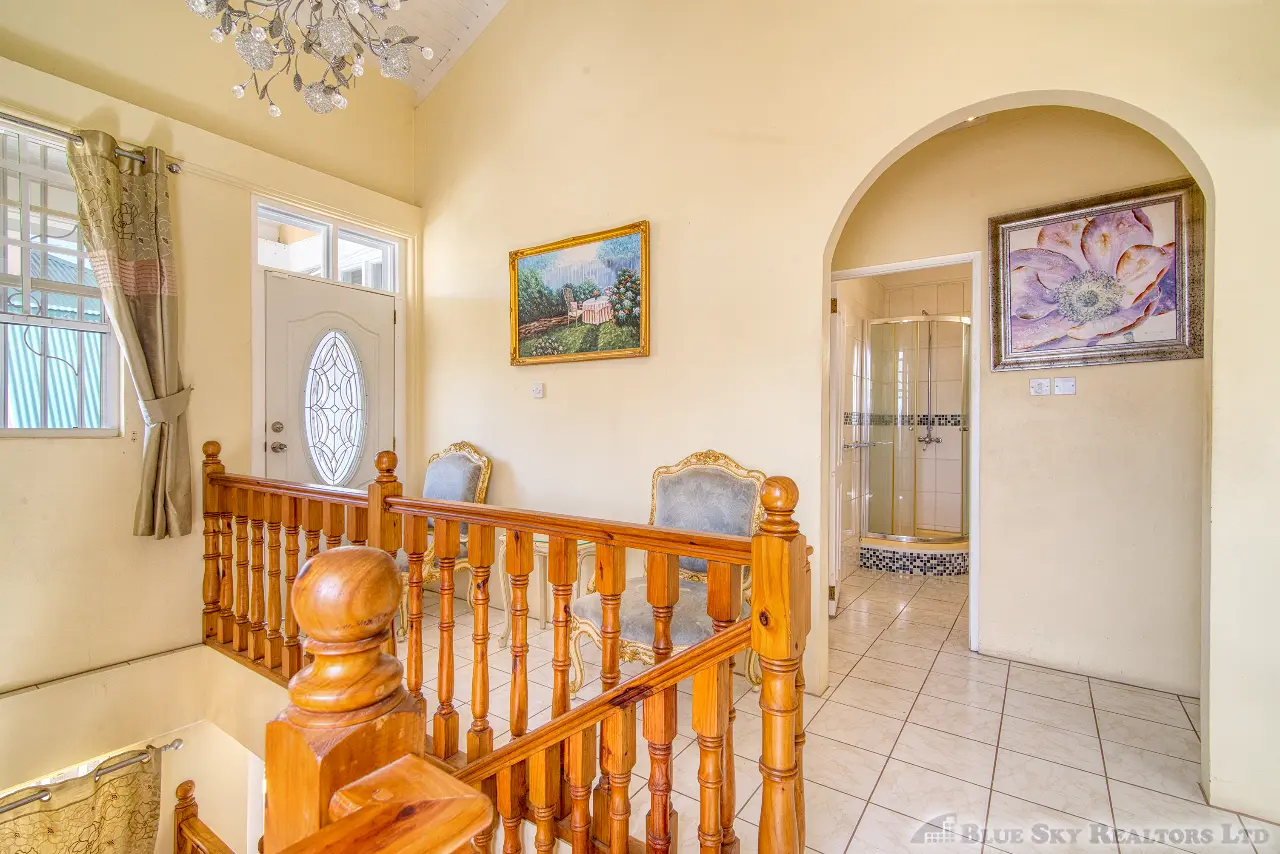 A beautifully finished wooden staircase leads you to the private sanctuary of the third floor. This level comprises three adorably finished bedrooms. The spacious master bedroom boasts a private en-suite bathroom. A shared bathroom services the two other well-sized bedrooms, one of which enjoys its own front porch, offering delightful views overlooking Fields Lane and Roseau to the west.