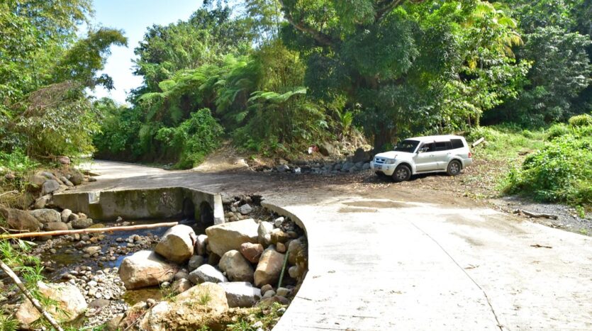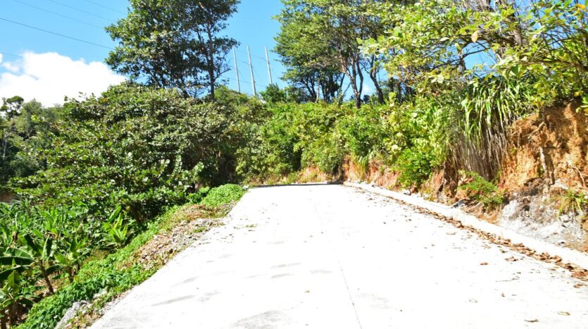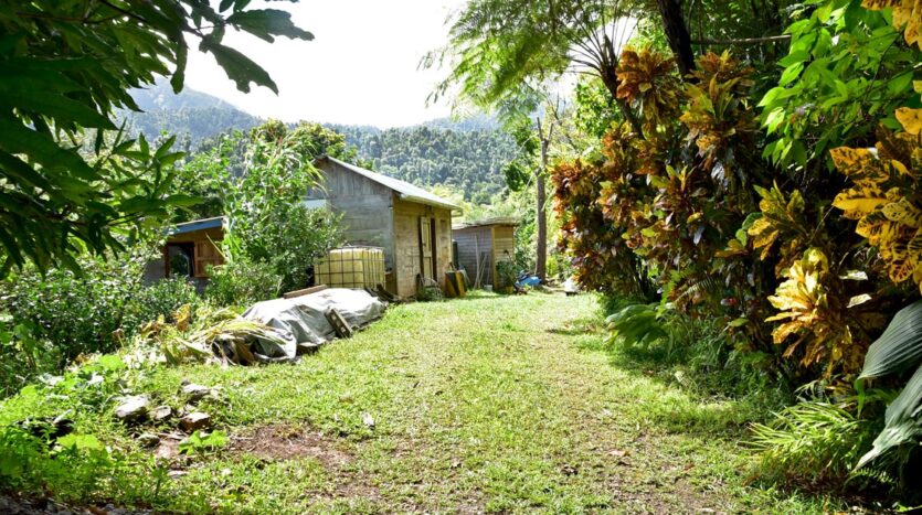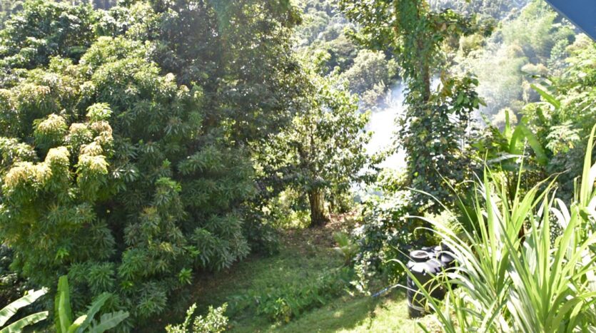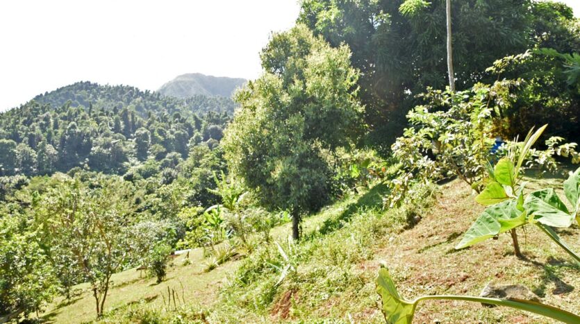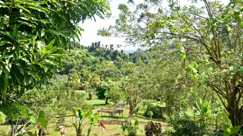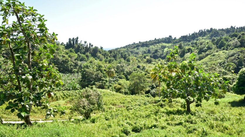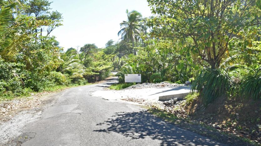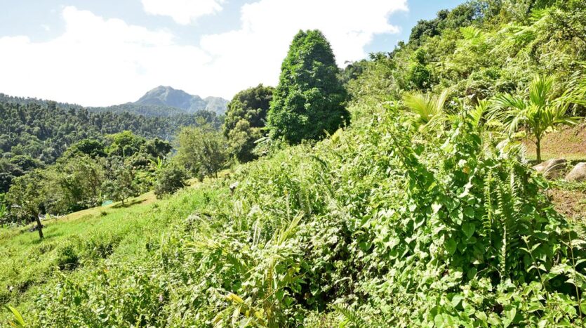 Adored with the clean flowing Canal River and offering breath taking Sea and Mountain views, this well laid out 3.86 acres of mainly gently sloping land and plateaus with about 50% of cultivation is a mere mile eastwards and inland along a partially paved road branching off from the main road to the village of La Plaine immediately before the entrance to the Beach. It bounds with an agricultural feeder road on the east and a paved road on the north leading to the Canal River and properties further afield.