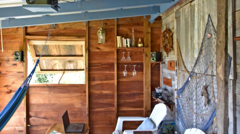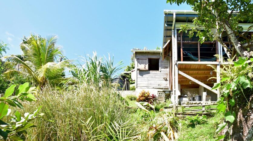An original cottage referred to as a “Kai Pirate” (The Pirate house), built in 2008 is erected at the top of the land. It has been completely restored and modernized in 2020 with all amenities. The carpenter used only local hard wood such as balata, tarapit posts and Laurie siding boards to a fine marine text varnish finish giving it a very cool and rustic look.