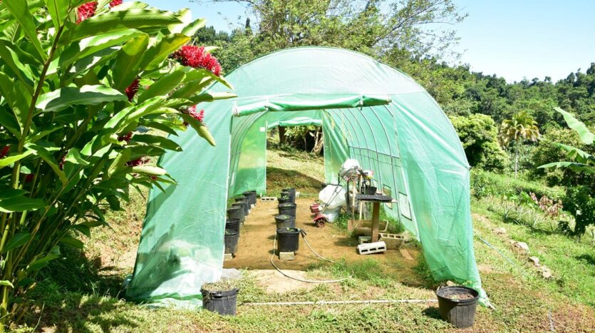 This very private yet not secluded property boast of a Green House where vegetables and plants such as pumpkin, water melon, cucumber, cabbage, eggplant, sweet pepper and tomato are grown. The list of fruits, root crops and trees are exhaustive but includes the following: bananas, plantain, coconut, bread fruit, bread nut, avocado pear, cocoa, coffee, calabash, a variety of mango, grape fruit, lime, lemon, tangerine, orange, sour soup, orange, giant guava, pomegranate, cashew, golden apple, sugar apple, custard apple, cherry, guava cherry, apricot, carambola, mulberry, raspberry, nutmeg, cinnamon, turmeric, ginger, moringa and ground provision such as dasheen, yam and Tania. The farm is supported by a composting system.