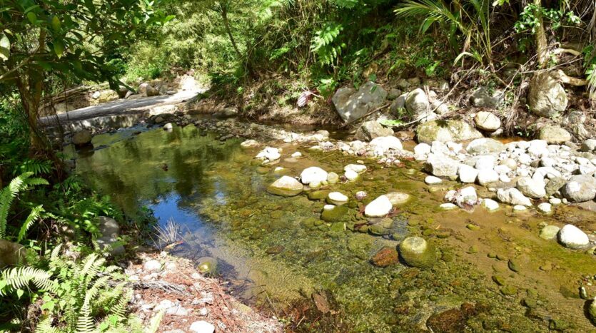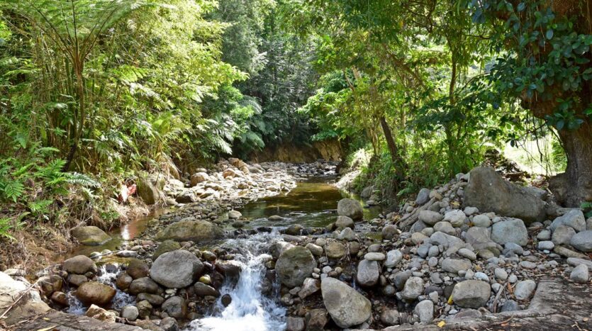 Do not miss this rare opportunity to own a unique property comprising a self-sustainable and pure organic farm with very fertile soil with over 50 species of plants, offering refreshing Sea and Mountain views and the bathing pool of the clean flowing Canal River on the southern boundary. Experience a relaxed lifestyle in the nature isle of the Caribbean where locals and expats live harmoniously together!
