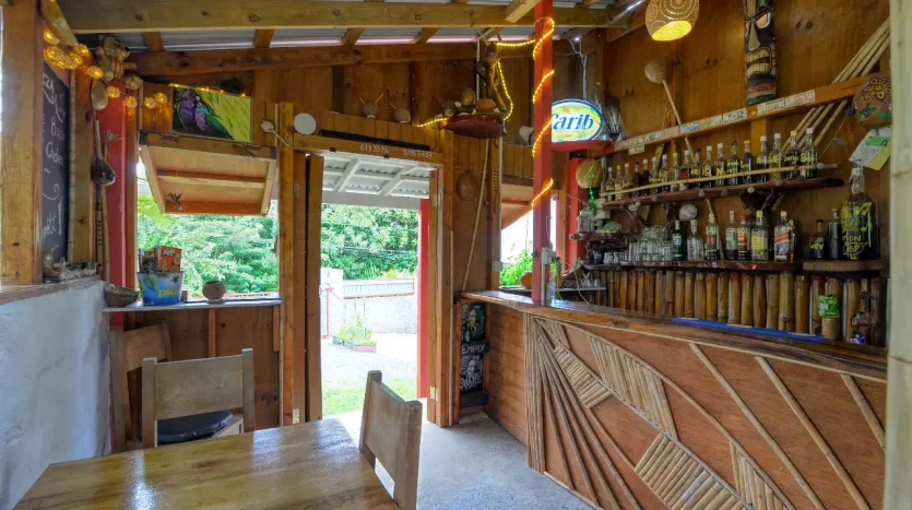 “3 Little Birds” operates as a beloved local snack bar and restaurant, well-regarded for its delicious homemade meals, including burgers, fries, pasta, and what guests have called the “best pizza on the island.” The bar is a highlight, offering a wide selection of over 38 different homemade “Bush Rums” and local punches.