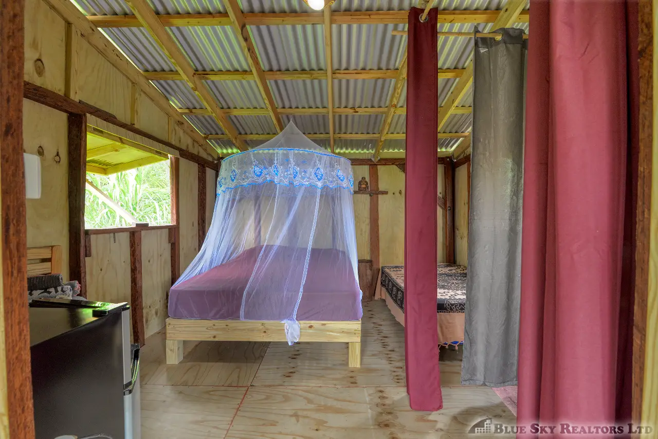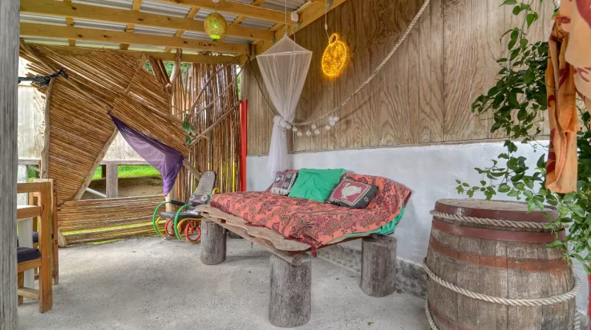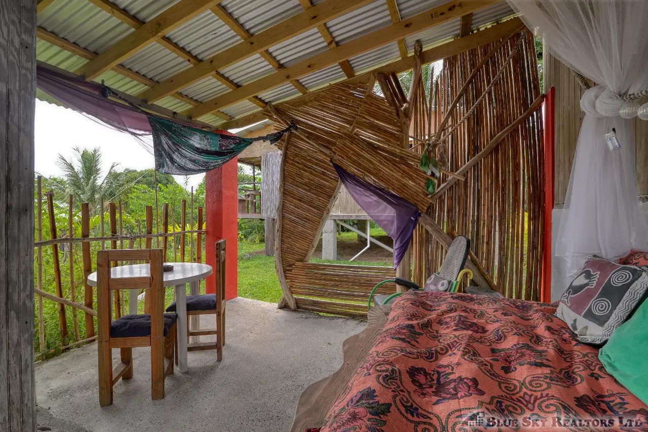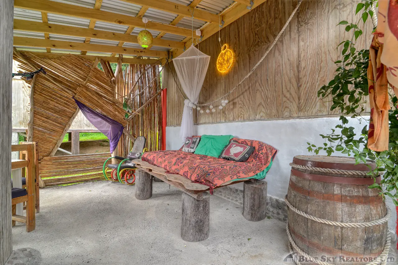 This distinctive property spans 11,290.sq.ft. and features three separate buildings, providing a versatile layout for both personal living and commercial operations. With the lot size providing for ample building space the foundation is being laid for and additional building. The accommodations are consistently praised by guests for being a “little paradise with a nice garden,” and the property has earned exceptional ratings on travel platforms. The wood cabane offers a large, private sea-view patio, perfect for soaking in the breathtaking sunsets. The brand-new apartment, set in a lush garden with fruit trees and a natural pool, offers a cozy and tranquil retreat with unique local wooden furniture and mosaic tiles.