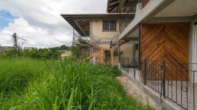 The property hosts two twin-floor concrete buildings that are connected by a central open staircase, offering a professional and organized aesthetic. Each building occupies a footprint of 1,750 square feet and is constructed using high-quality reinforced concrete for the floors, walls, and foundation. The design includes attractive hipped roofs with metal cladding and painted open rafters on the upper floors, creating a spacious and airy atmosphere for residents.