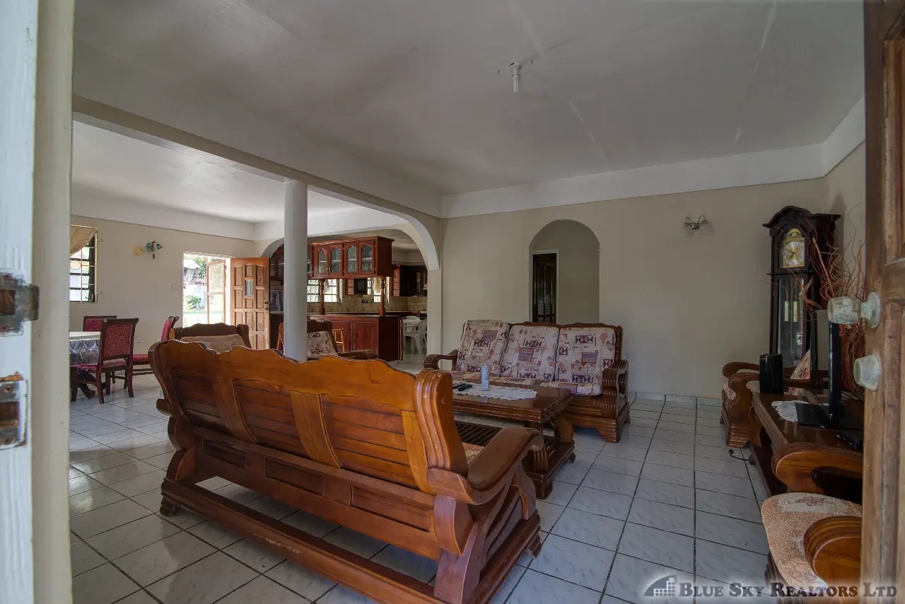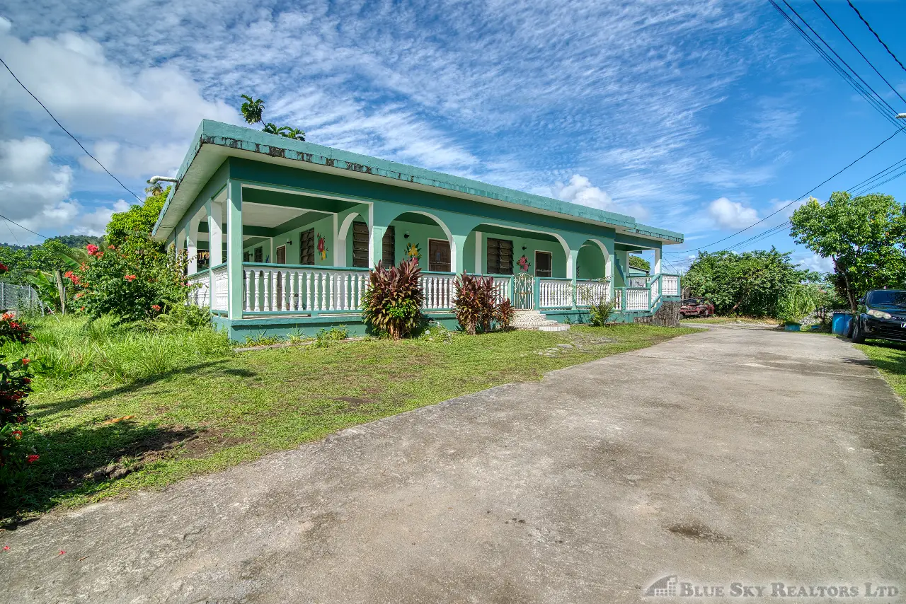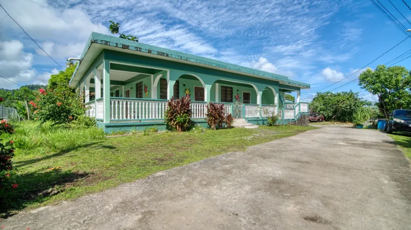 Presenting a spacious 3-bedroom bungalow, solidly constructed of reinforced concrete, nestled in the tranquil Morne Frayall Housing Scheme in Riviere Cyrique. Elevated approximately 50 feet above the main road, this well maintained property benefits from a cool environment and sits on a generous 6,349 square feet of flat to gently sloping land.
