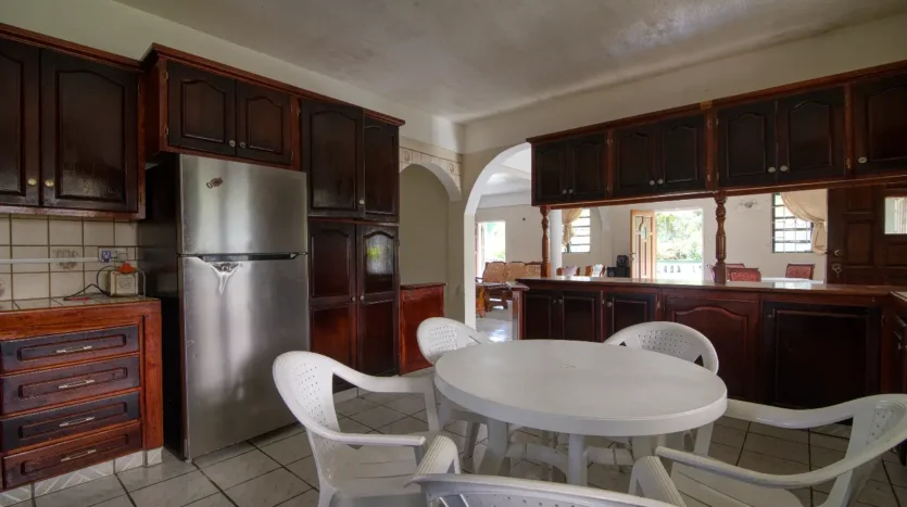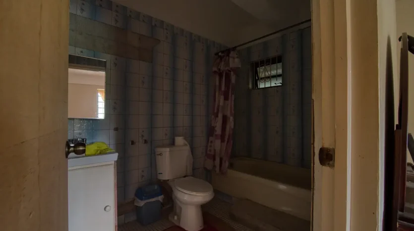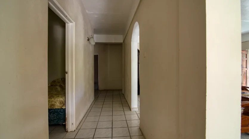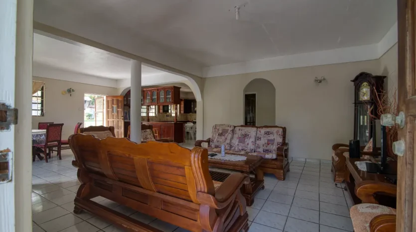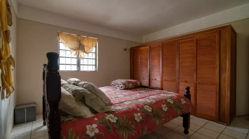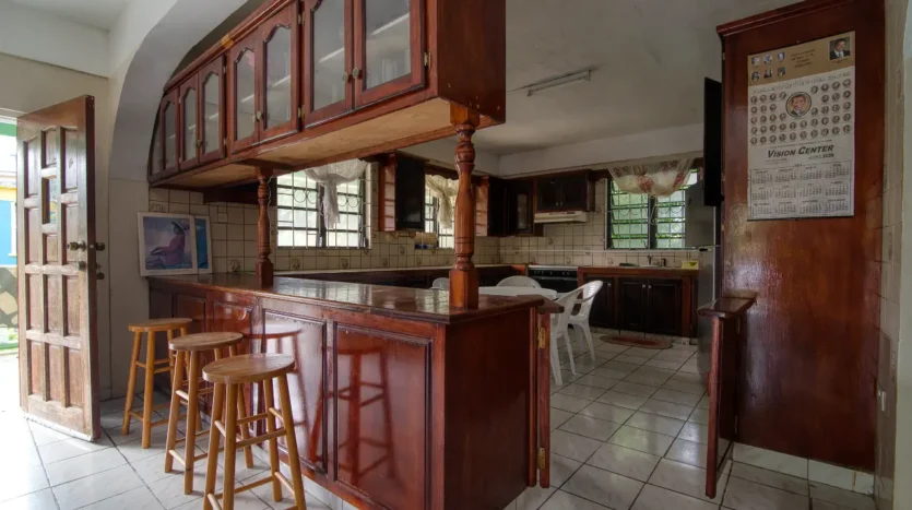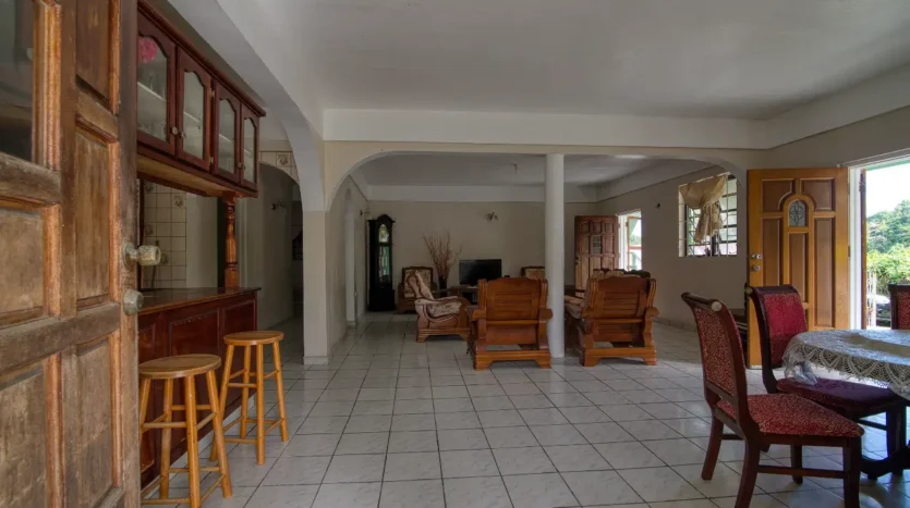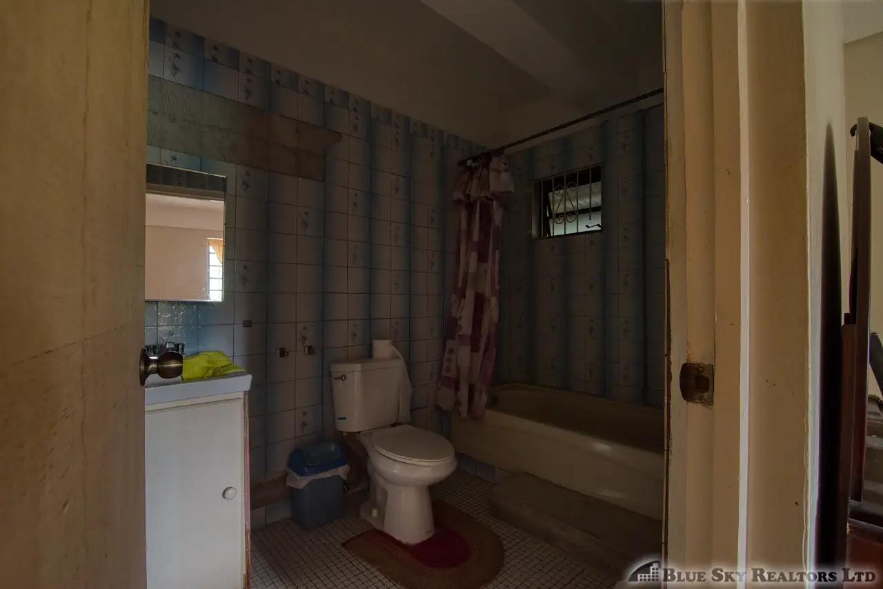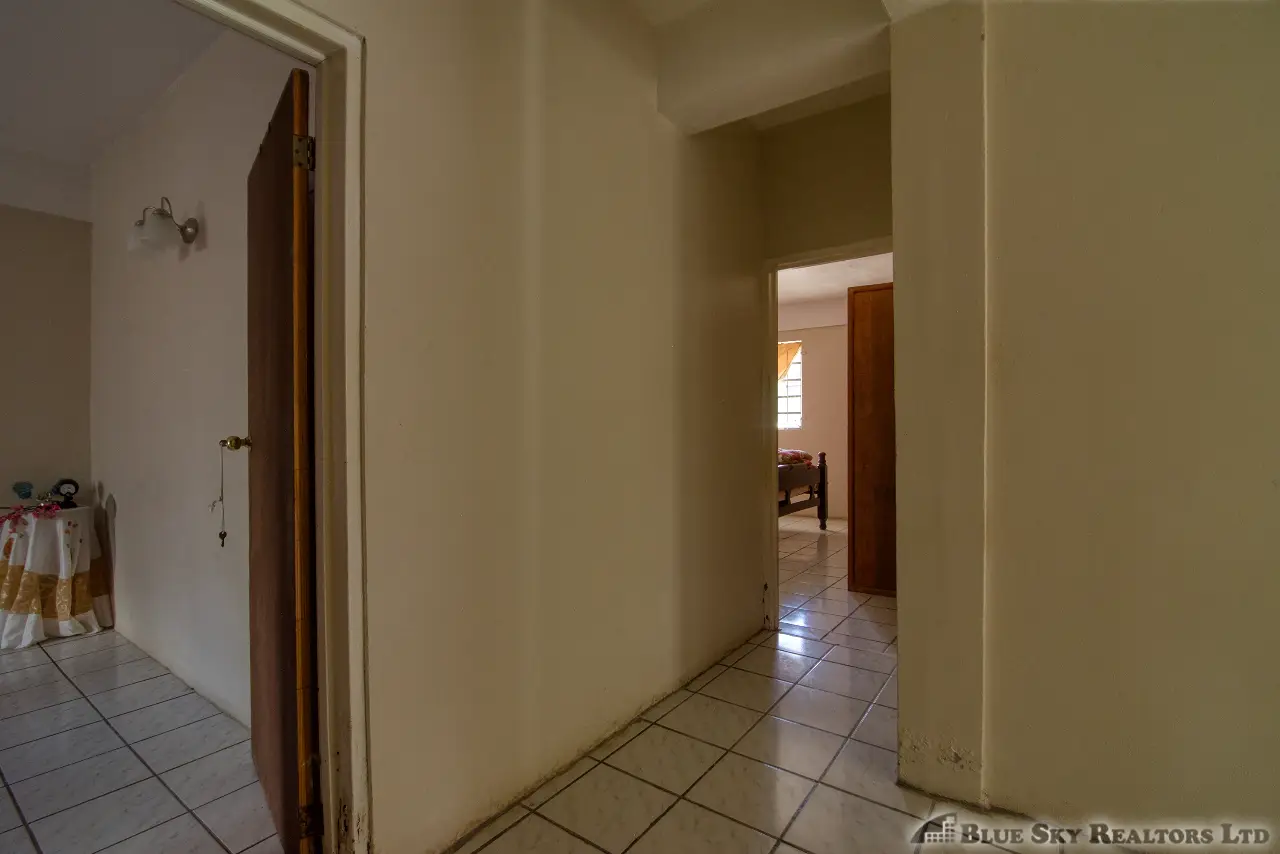 Built in the 1990s, the home is structurally sound and presents a gross floor area of 2,725 square feet. The interior features a practical and large open-plan layout for the living, dining, and kitchen areas, ensuring ease of movement. The kitchen is equipped with built-in wooden cabinetry and concrete tiled countertops. The accommodation includes an ensuite Master bedroom, with a shared bathroom serving the two additional bedrooms. The house features ceramic tile flooring throughout, glass awning windows, and a 190 square foot enclosed garage. Notably, the concrete roof provides durability and clear potential for either a recreation area or future upward expansion.