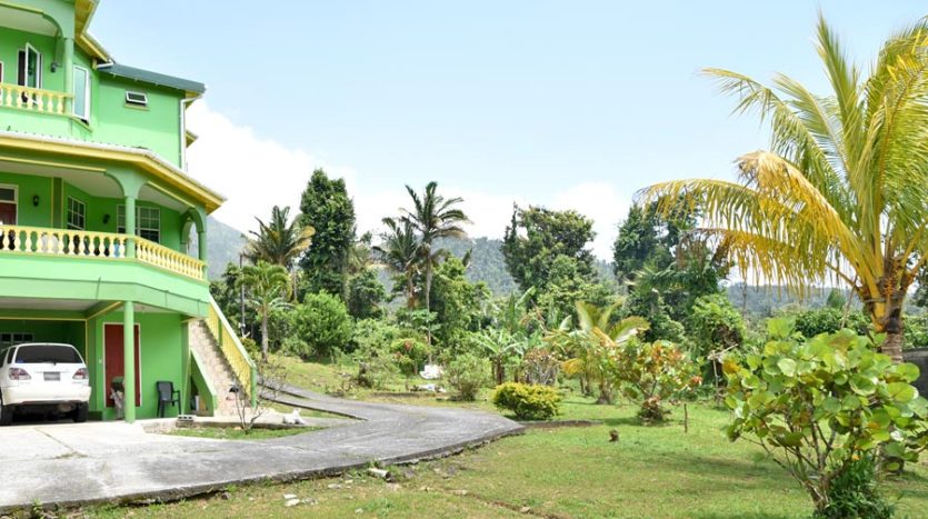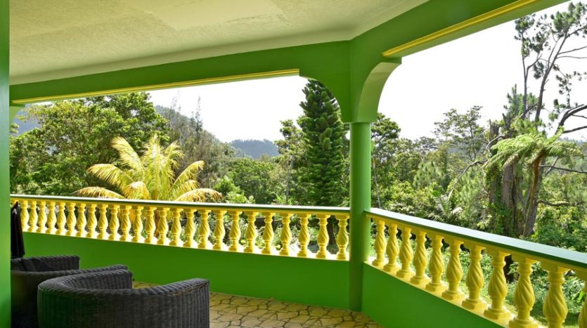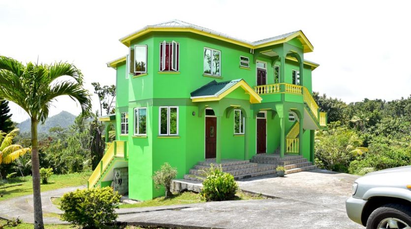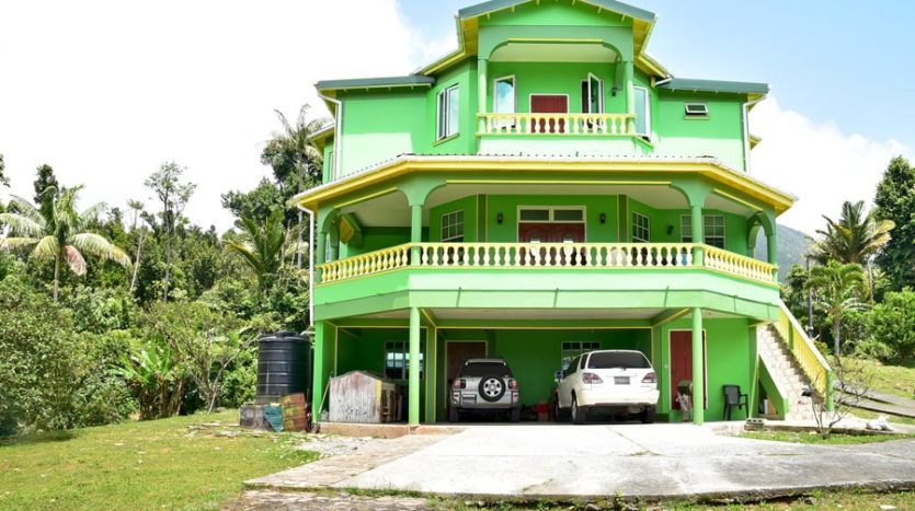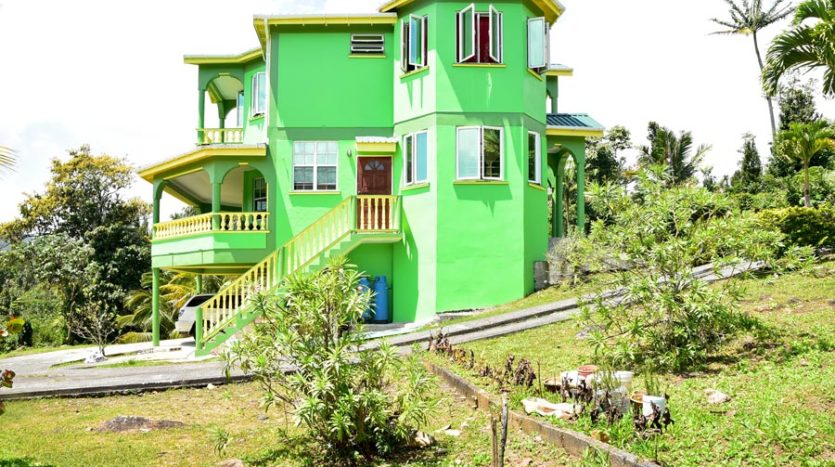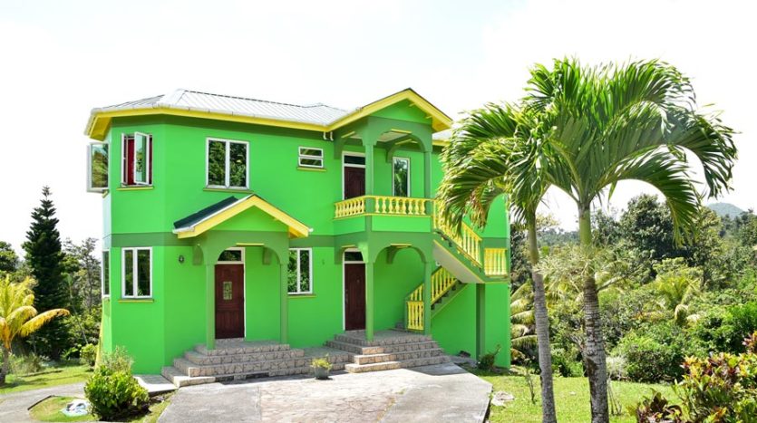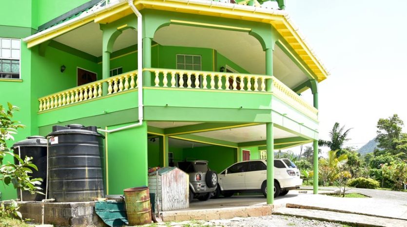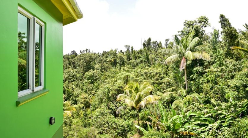 A uniquely designed beautiful home standing tall in the green mountain forest at Saltaun, a 3 minute drive from the Pond Casse Round-About on 0.48 acres of well-maintained grounds and providing breath taking mountain views. Centrally located in the interior of Dominica, this private yet not secluded property accessed via a secondary road roughly 200 yards from the main public Saltaun road is a great get away from the city which is a mere 25 minute drive away.