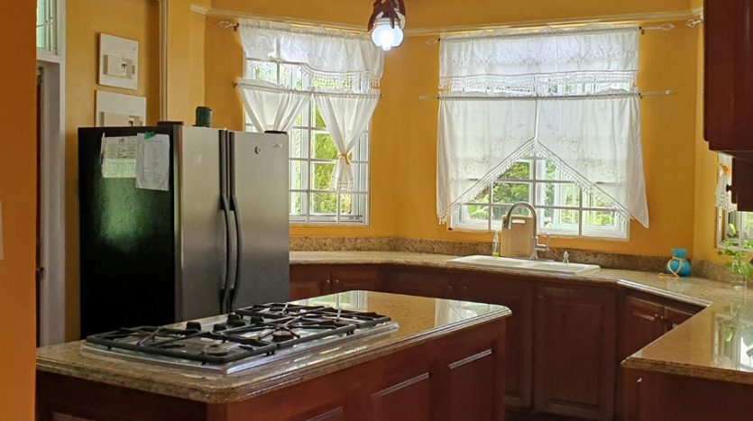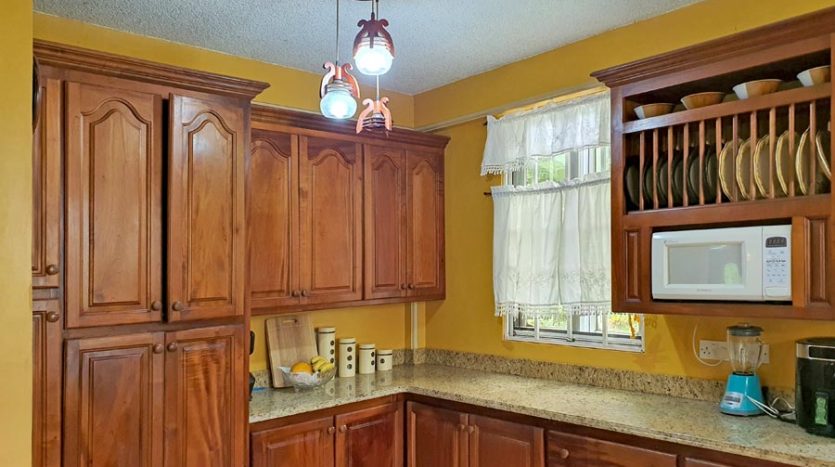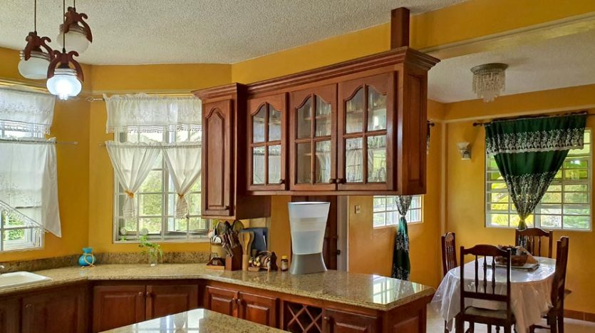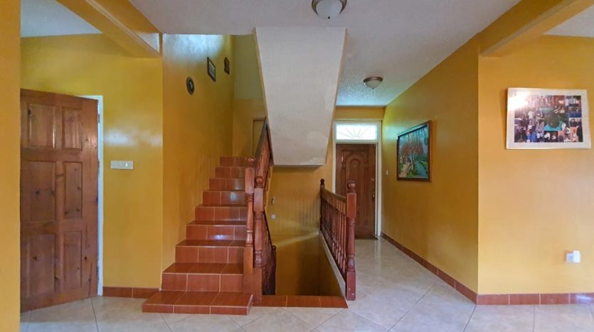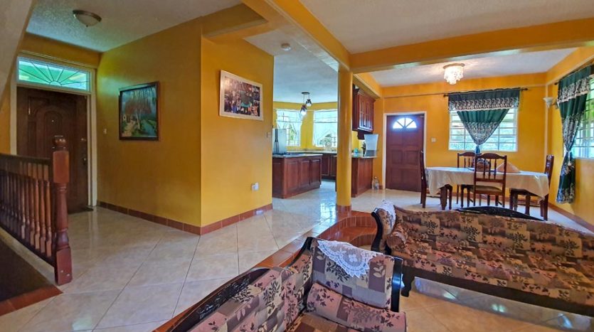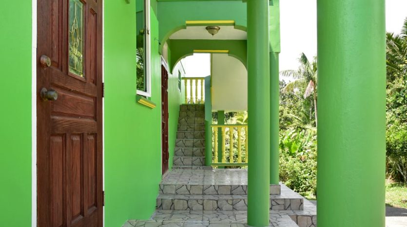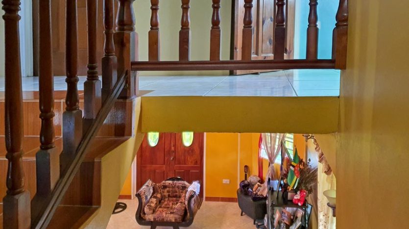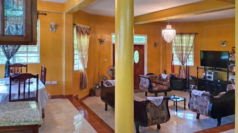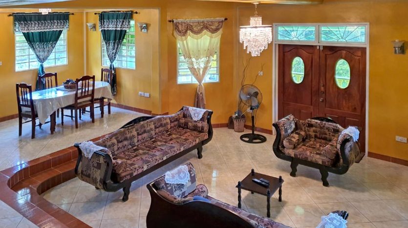 A uniquely designed beautiful home standing tall in the green mountain forest at Saltaun, a 3 minute drive from the Pond Casse Round-About on 0.48 acres of well-maintained grounds and providing breath taking mountain views. Centrally located in the interior of Dominica, this private yet not secluded property accessed via a secondary road roughly 200 yards from the main public Saltaun road is a great get away from the city which is a mere 25 minute drive away.