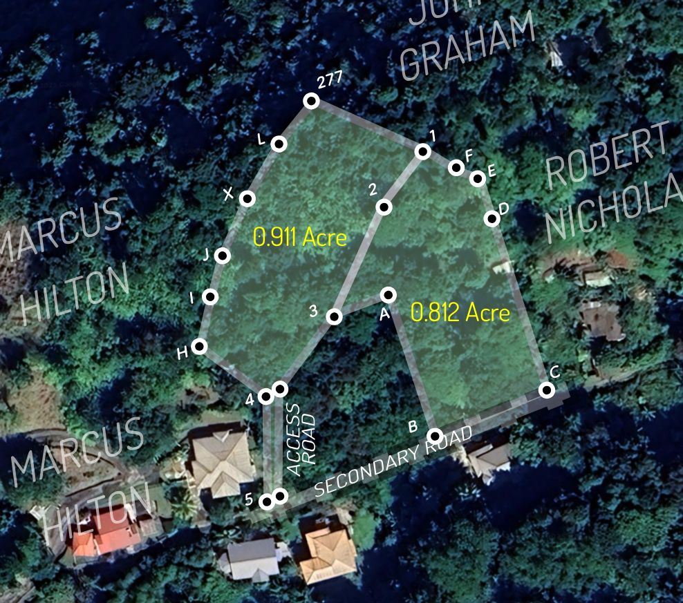 Secure your future with this expansive 1.723-acre land parcel, centrally located in the highly desirable, cool-climate area of Sylvania, Dominica. Comprising two adjoining lots, this generous acreage (0.812 acre and 0.911 acre) is perfectly suited for both residential and agricultural ambitions.