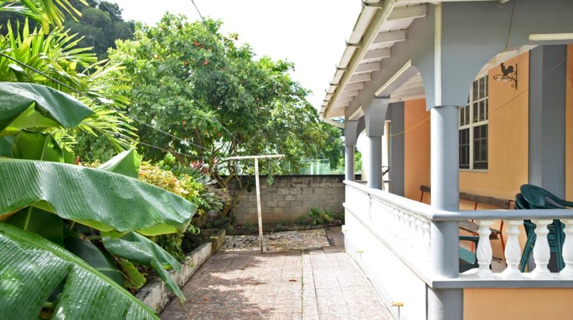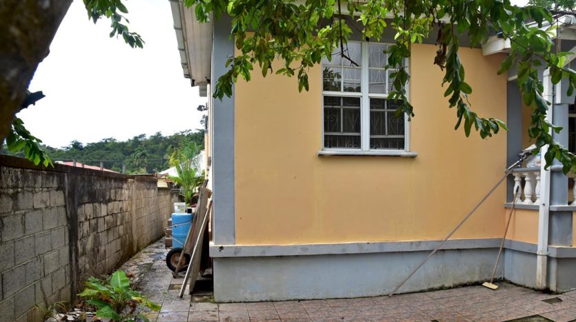 The property which fronts roads on the east and the south, is fully enclosed with perimeter wall and iron gates. Most of the yard area is tiled and some sections planted with a flower garden and a variety of fruit trees such as limes, bananas guava, peas, sugar cane and pawpaw.
