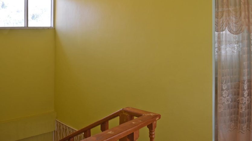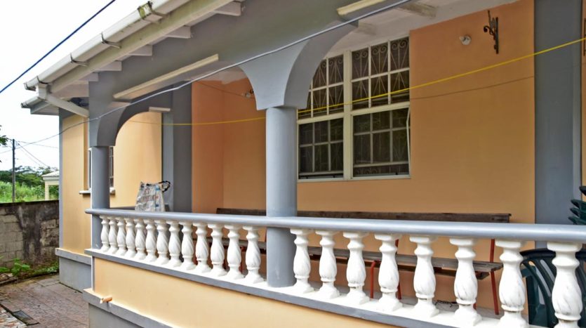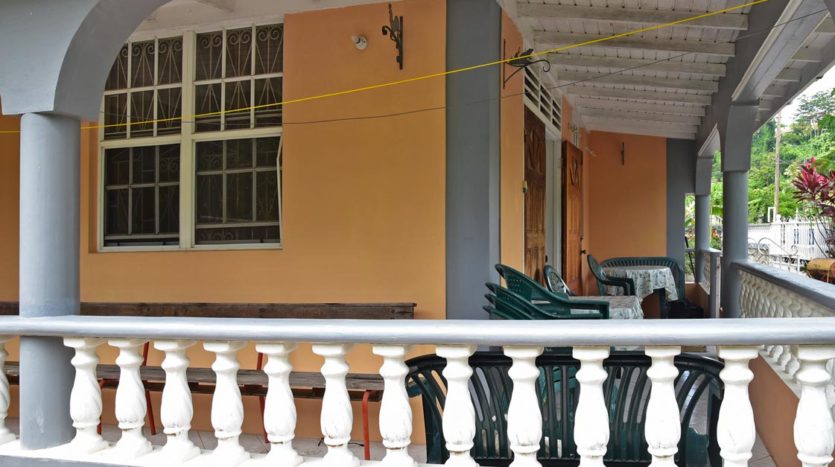 The upper floor of the structure which is accessed via a concrete staircase with lovely wooden hand rails, is divided into three (3) bedrooms including an en-suite- bedroom with its porch providing amazing views of the surrounding country side, a shared bathroom/toilet and corridor.