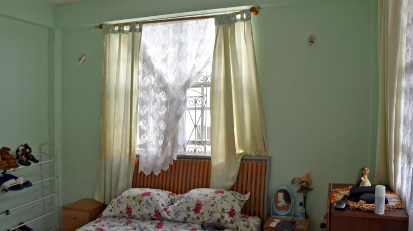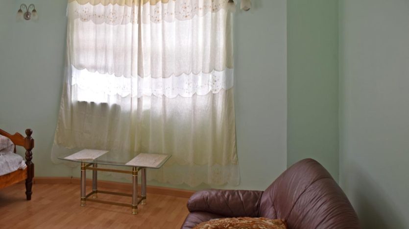 The floors are covered in ceramic tiles throughout and ceramic wall tiles on the bathroom walls, the ceiling is painted finished plywood, the windows are vertical sliding sash type and burglar bars are fitted on windows and doors.